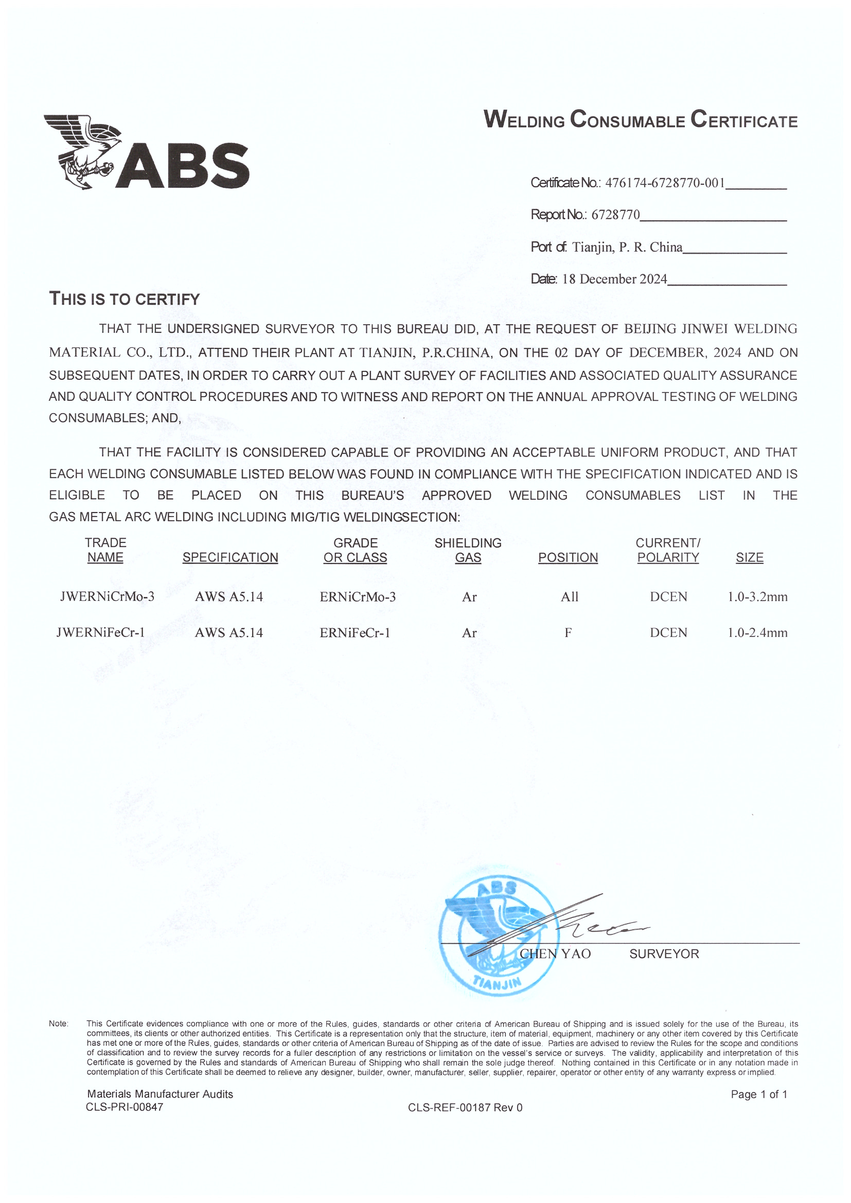 美国船级社认证证书