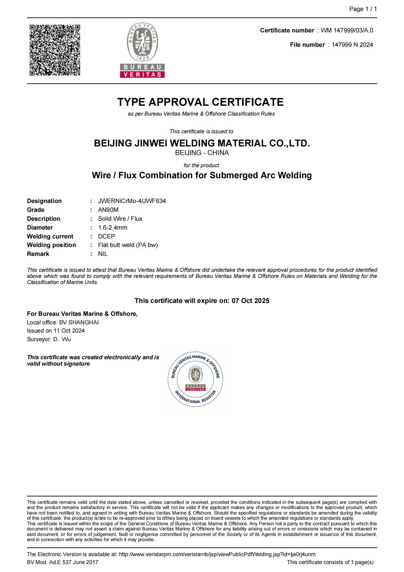 法国船级社认证证书